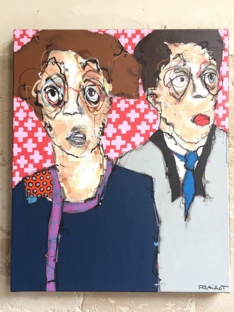 Maxime Frairot, jeune peintre installé dans l’Aube, peint des personnages étranges qui semblent spectateurs de notre monde. Figés, surpris, les yeux exorbités sur des visages étirés, ils nous montrent à quel point l’être humain est physiquement imparfait. Collés les uns aux autres, on dirait qu’ils se parlent, chuchotent, colportent la rumeur. Personnages imaginaires, ils sont directement inspirés de la réalité, de rencontres ou d’évènements vécus par leur auteur. Le talentueux peintre expose sur le territoire français mais aussi jusqu’en Espagne.